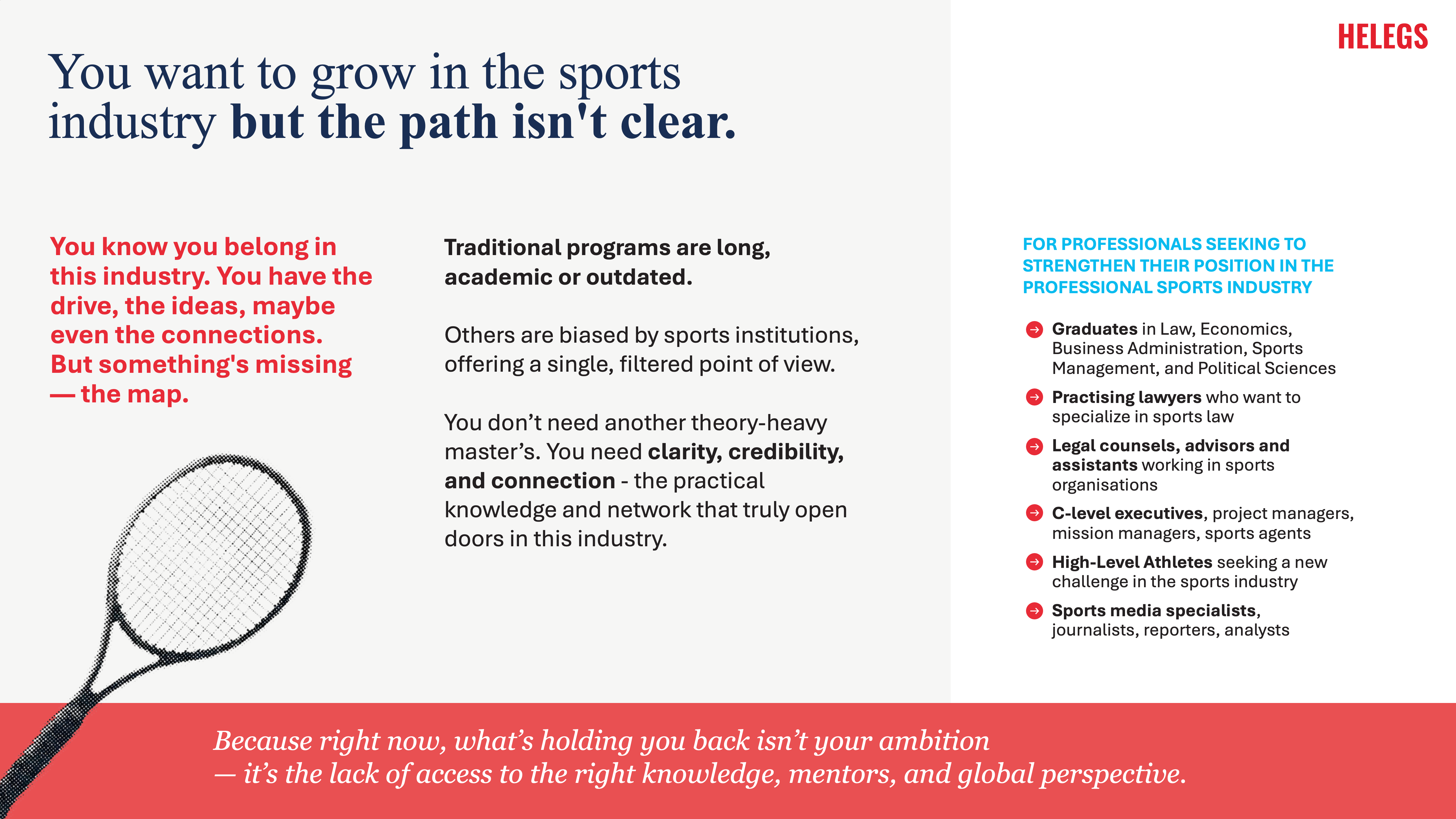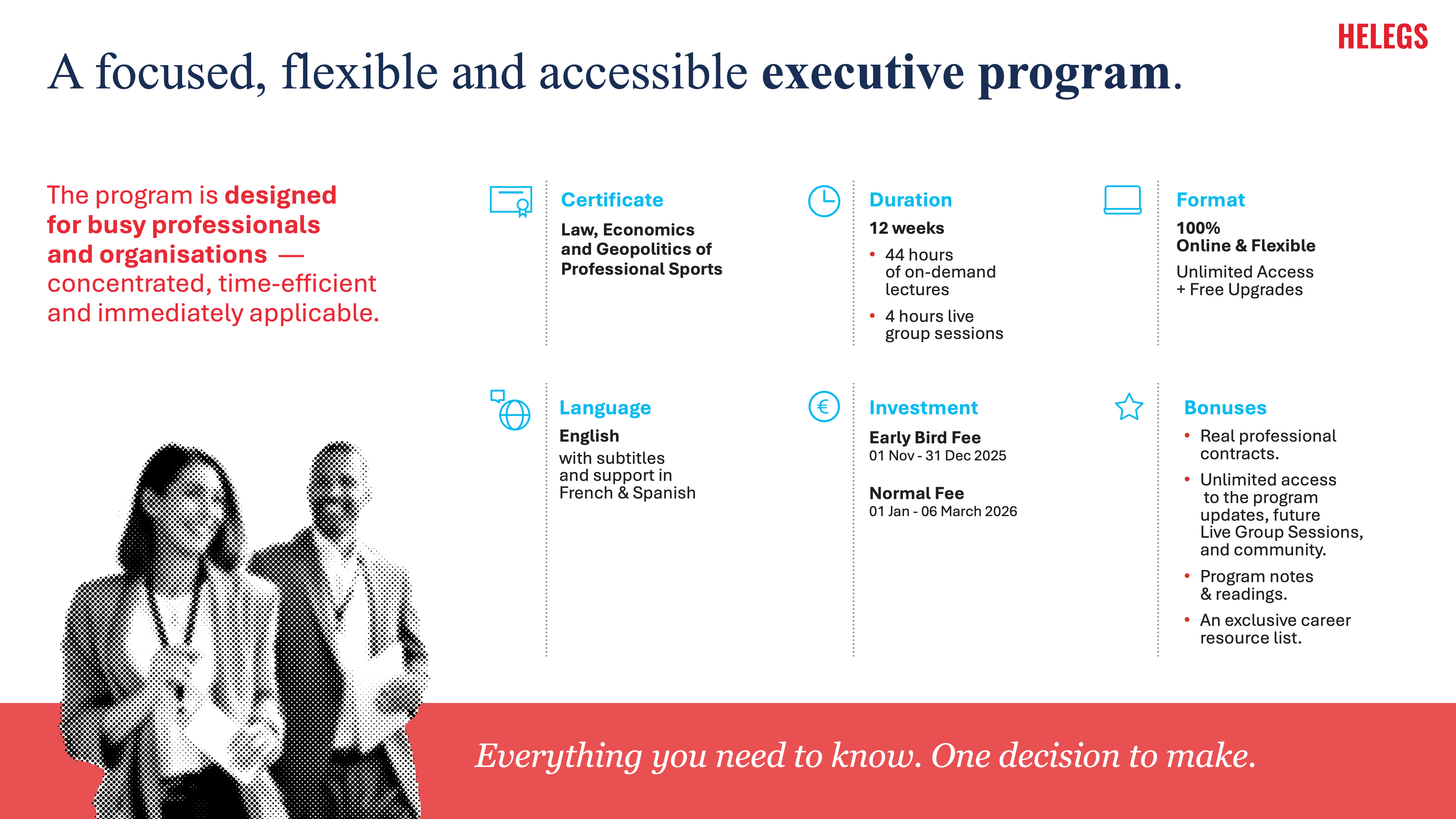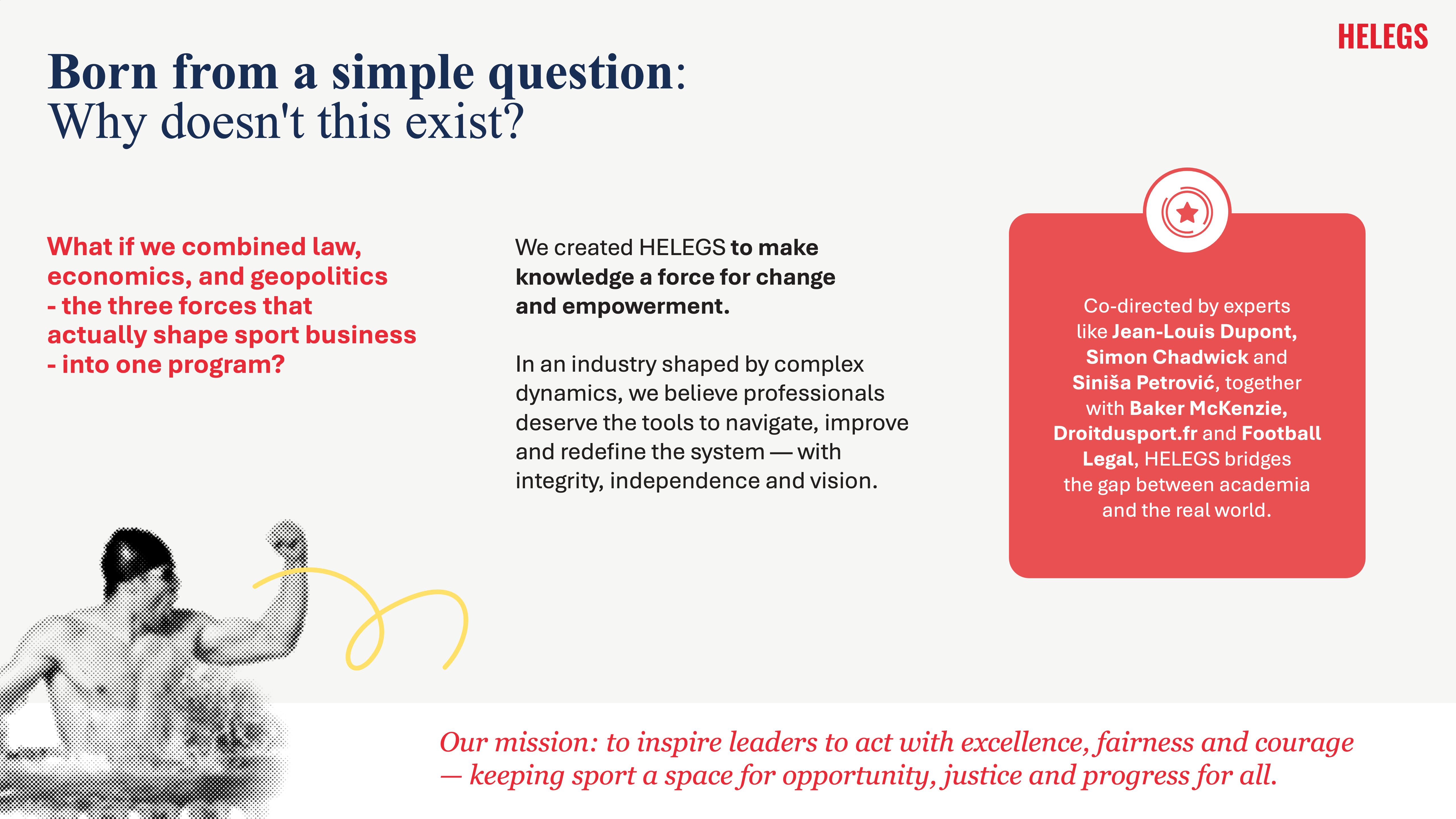 HELEGS es un Programa Ejecutivo especializado en derecho, economía y geopolítica del deporte..